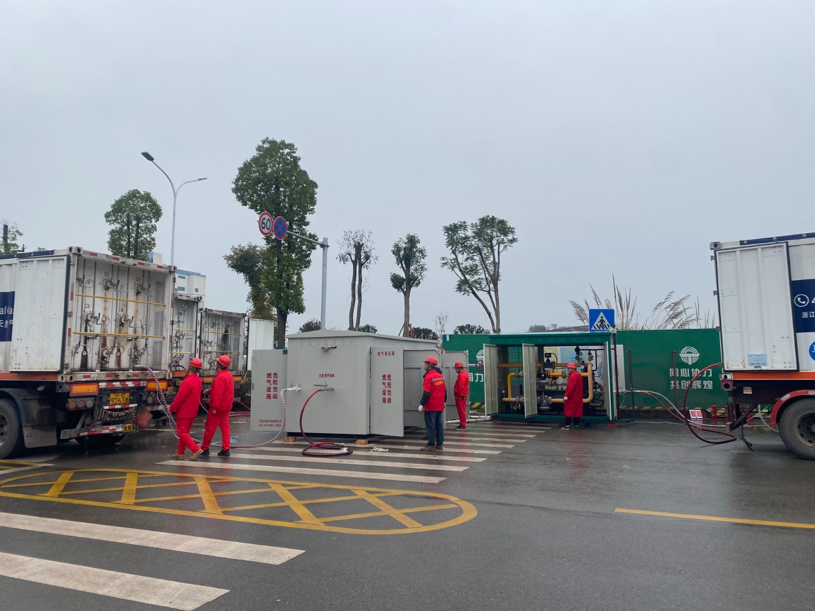 榮縣川燃秉承“保民生、保公用、保重點”原則,立即啟動應(yīng)急保供預(yù)案,多方尋找應(yīng)急保供氣源,組織各方施工隊伍日夜奮戰(zhàn),提前完成了CNG應(yīng)急供氣管道安裝、試車加注工作,確保應(yīng)急加注設(shè)備與氣源準備就緒。同時,公司積極對接縣住建局、市場監(jiān)管局、應(yīng)急管理局、公安局、交通局及青陽街道等部門,科學(xué)規(guī)劃施工場地,落實各項保障措施,嚴格監(jiān)督施工質(zhì)量,為保供作業(yè)提供堅實保障。通過公司技術(shù)交底、作業(yè)人員培訓(xùn),試車驗收合格、準予加注。