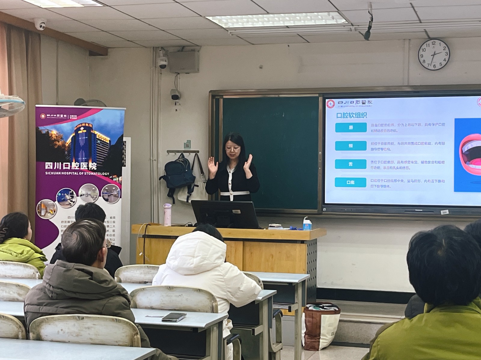 活動(dòng)現(xiàn)場,四川大學(xué)華西口腔醫(yī)學(xué)院博士、四川口腔醫(yī)院副主任醫(yī)師、牙周科主任聶晶醫(yī)生為到場的師生進(jìn)行了全面而深入的口腔健康知識科普,她從牙齒及其周圍支持結(jié)構(gòu)的基本構(gòu)造、牙周疾病成因及其危害講起,強(qiáng)調(diào)了日常護(hù)理的重要性;詳細(xì)分析了常見的牙周疾病成因及其危害,講解了早期發(fā)現(xiàn)和干預(yù)的方法;隨后,聶醫(yī)生通過現(xiàn)場演示,講解了科學(xué)有效的刷牙技巧,以及正確使用牙線和漱口水等維護(hù)口腔衛(wèi)生的實(shí)用方法,幫助大家養(yǎng)成良好的口腔衛(wèi)生習(xí)慣。現(xiàn)場師生紛紛表示,聶醫(yī)生深入淺出的講解讓大家對口腔健康有了更全面的認(rèn)識,也增強(qiáng)了自己維護(hù)口腔健康的意識。