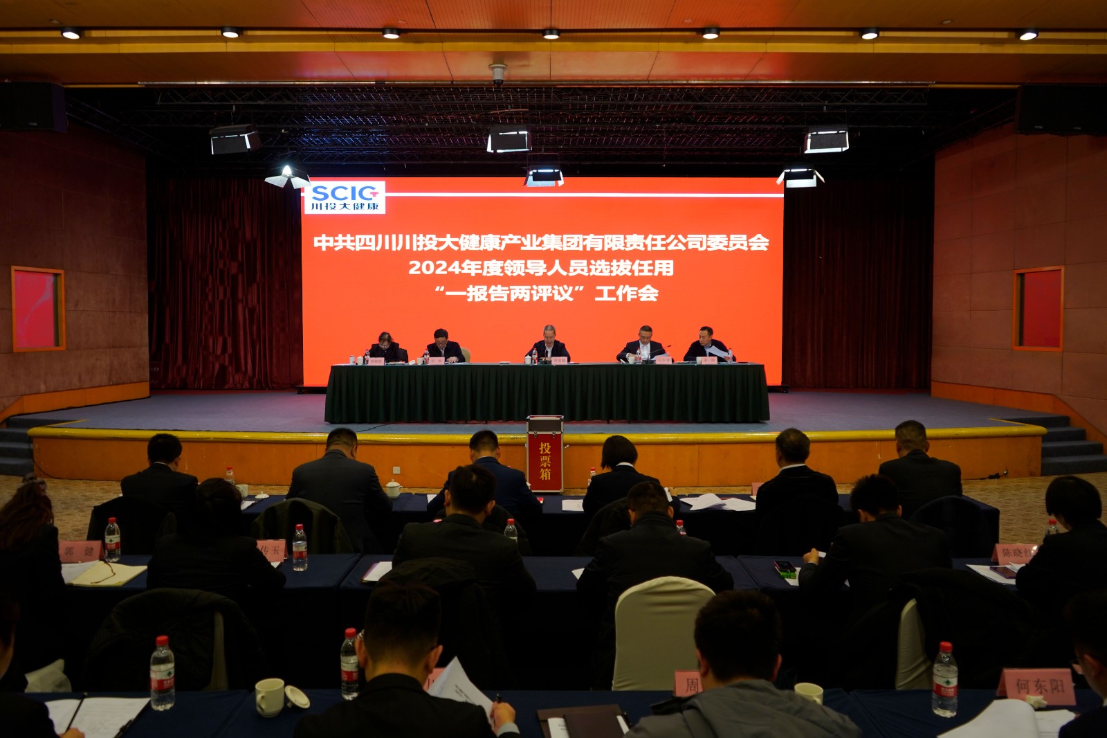 1月10日下午,川投大健康產(chǎn)業(yè)集團(tuán)在川投國際酒店召開2024年度領(lǐng)導(dǎo)人員選拔任用“一報告兩評議”工作會,會議由川投大健康產(chǎn)業(yè)集團(tuán)黨委副書記、職工董事、工會主席王少甫主持。