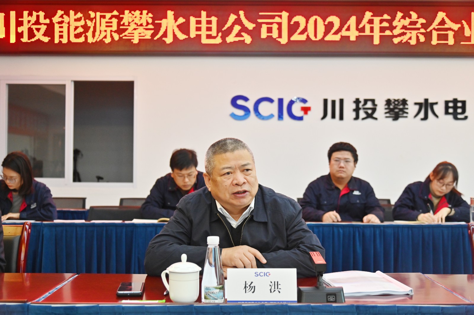 楊洪對攀水電公司2024年度工作表示肯定。他指出,攀水電公司領(lǐng)導(dǎo)班子團結(jié)帶領(lǐng)全體干部員工自我加壓、勇于擔(dān)當(dāng)、奮力拼搏,在銀江水電站的建設(shè)中克服了種種困難,提前1年實現(xiàn)了投產(chǎn)發(fā)電的目標(biāo)。針對2025年工作,他強調(diào),攀水電公司要始終堅持黨建引領(lǐng),把黨的領(lǐng)導(dǎo)融入公司業(yè)務(wù)工作的各方面全過程,強化責(zé)任擔(dān)當(dāng),狠抓工作落實,確保工程質(zhì)量、進度、發(fā)電收益、電力營銷等各項年度目標(biāo)任務(wù)順利完成。要壓緊壓實安全責(zé)任,圍繞提升安全生產(chǎn)工作的精準(zhǔn)性實效性,抓早抓小,穩(wěn)步推動治本攻堅三年行動,落實落細安全生產(chǎn)各項工作,以過硬措施堅決守牢生態(tài)紅線、安全底線。要凝心聚力深化改革,按照集團關(guān)于深化改革的決策部署,以釘釘子精神推動各項改革任務(wù)落地實施,全力沖刺銀江水電站全部機組投產(chǎn)發(fā)電目標(biāo),在推動公司高質(zhì)量發(fā)展再創(chuàng)新功、再創(chuàng)佳績。