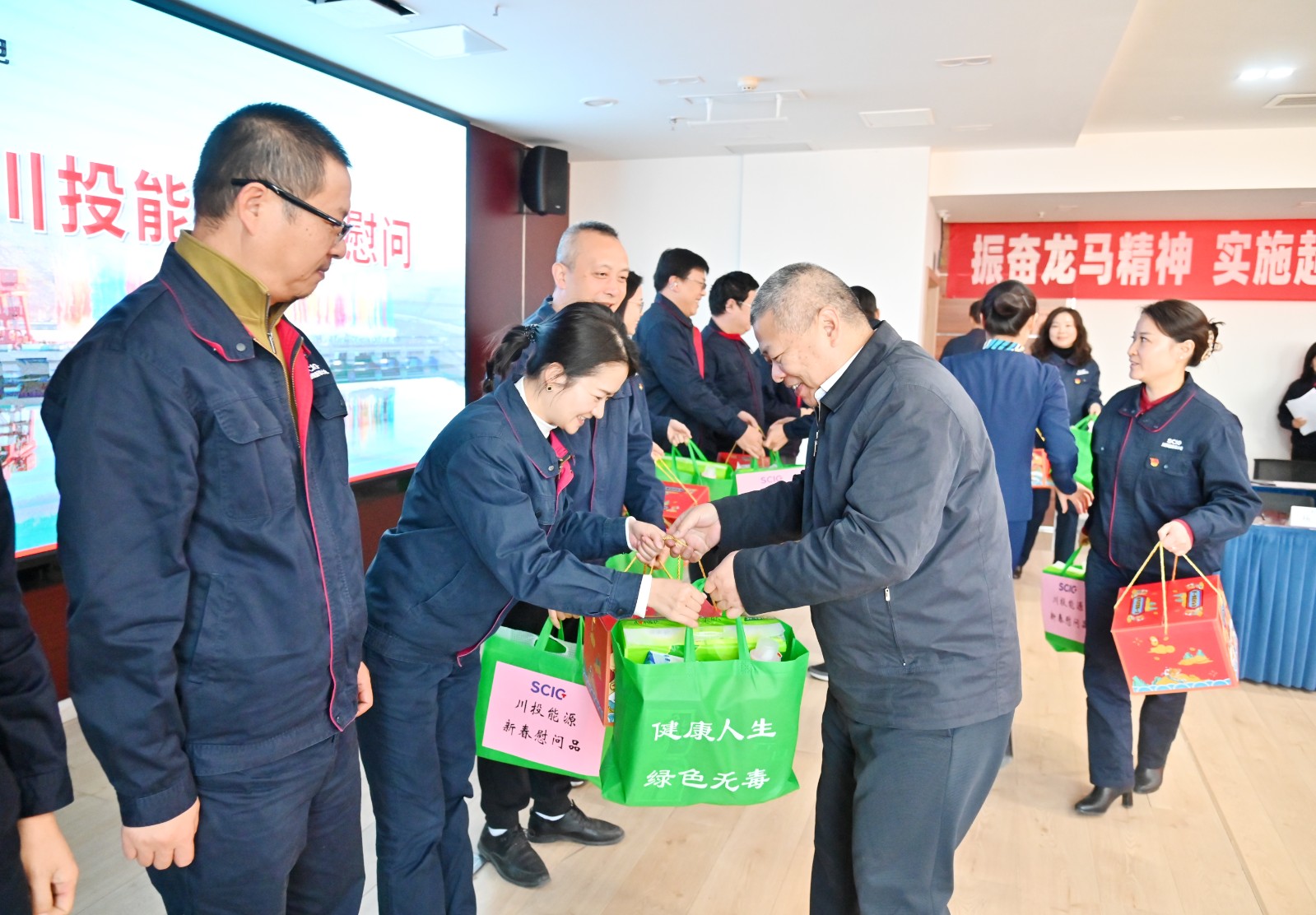 考核結(jié)束后開展了“送溫暖”慰問活動,楊洪一行慰問銀江水電站工程建設(shè)一線的職工,并為他們送上了新春大禮包、日用品等,鼓勵大家要以首臺機組投產(chǎn)發(fā)電為新的起點,推進后續(xù)工程建設(shè)和機組安裝調(diào)試,努力實現(xiàn)2025年全面投產(chǎn)發(fā)電目標(biāo),為公司高質(zhì)量發(fā)展作出更大貢獻。