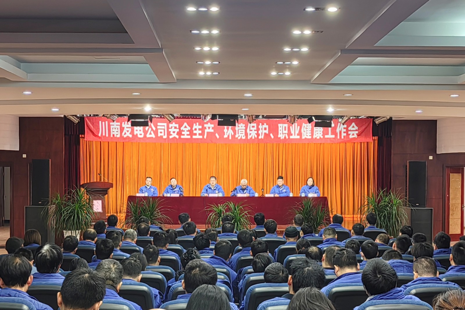 1月17日上午,川南發(fā)電公司召開2025年安全生產(chǎn)、環(huán)境保護(hù)和職業(yè)健康工作會(huì),總結(jié)2024年工作成績,布置2025年工作任務(wù)。會(huì)議由公司黨委委員、常務(wù)副總經(jīng)理唐春主持。公司黨委書記、董事長劉勝金,黨委副書記、總經(jīng)理陳嵩及其他在家公司領(lǐng)導(dǎo)、各部門及常駐外委維護(hù)單位項(xiàng)目部負(fù)責(zé)人和能離開工作崗位的員工共計(jì)200余人參加會(huì)議。