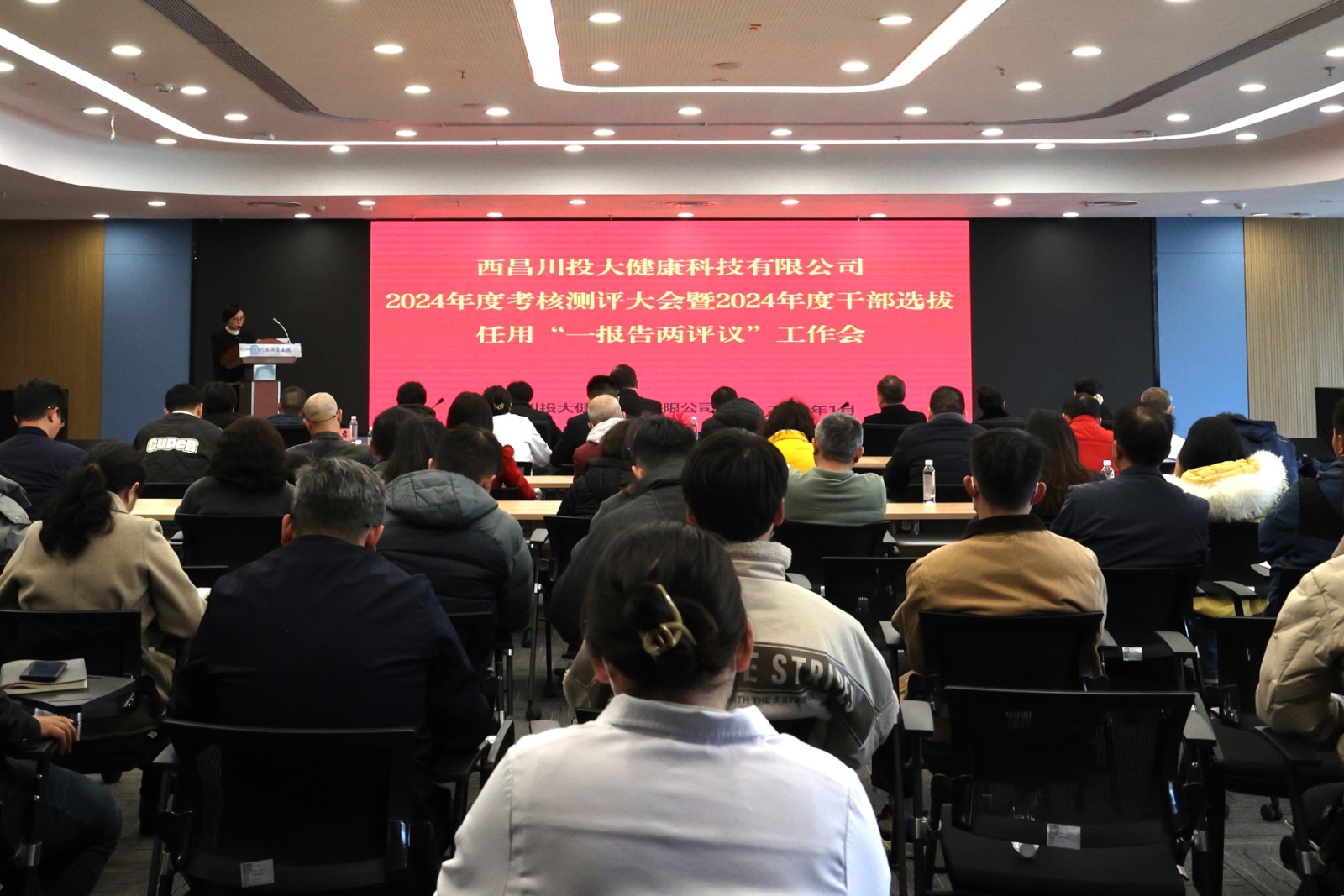 近日,川投西昌大健康公司召開2024年度考核測評大會暨2024年度干部選拔任用“一報告兩評議”工作會。公司黨委委員、副總經(jīng)理、醫(yī)院副院長蒲軍主持會議。