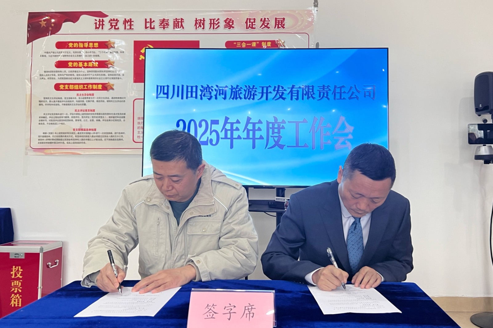 會(huì)上,楊超龍代表旅游公司黨支部與領(lǐng)導(dǎo)班子分別簽署《2025年黨風(fēng)廉潔建設(shè)責(zé)任書》;黃焓君代表公司領(lǐng)導(dǎo)班子與各部門負(fù)責(zé)人分別簽署《2025年度部門綜合目標(biāo)責(zé)任書》《2025年度部門安全環(huán)保目標(biāo)責(zé)任書》《2025年度“雙廉”目標(biāo)責(zé)任書》。