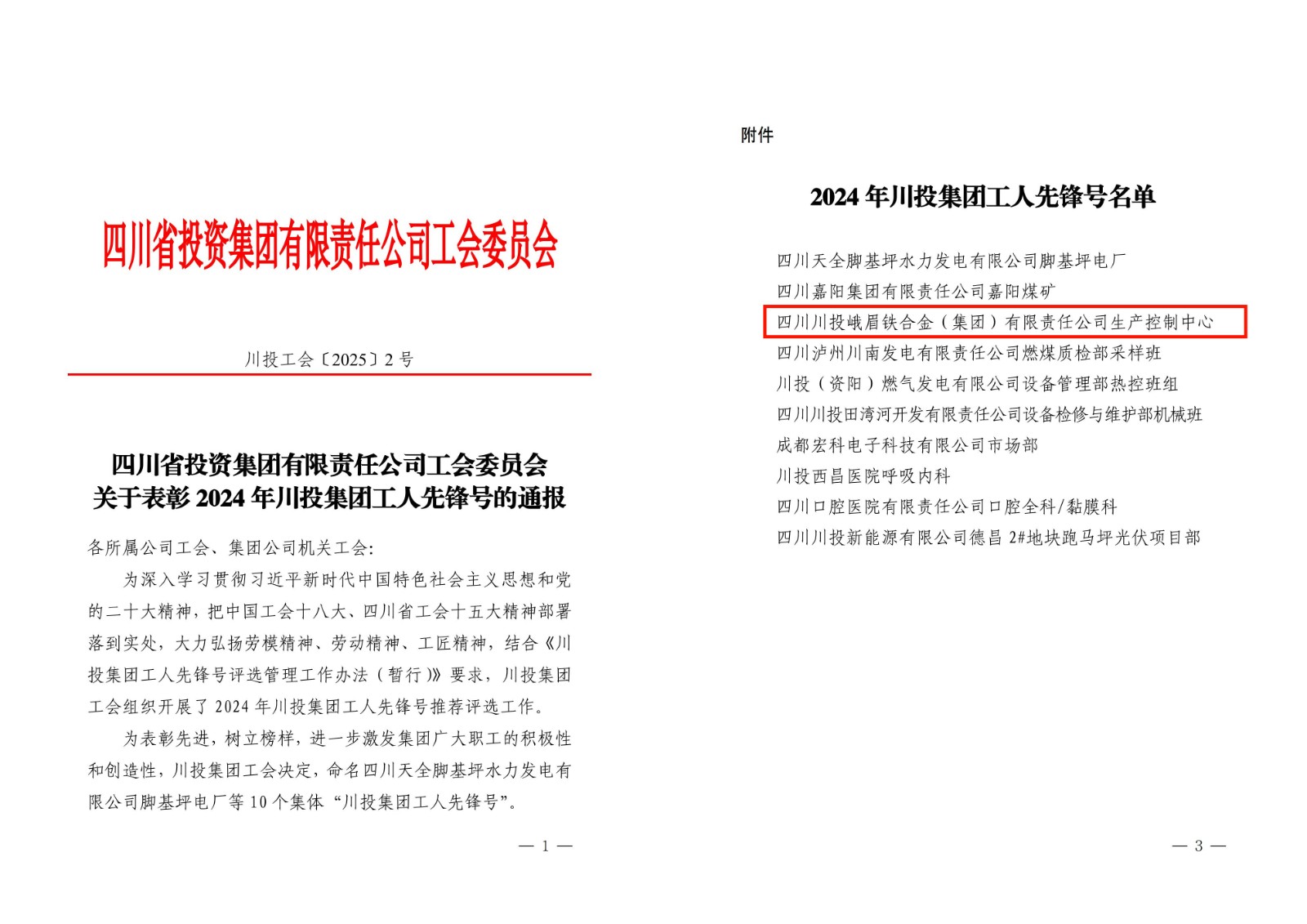 近日,由川投集團工會開展的“2024年川投集團工人先鋒號”結(jié)果新鮮出爐,川投峨鐵公司生產(chǎn)控制中心獲評“2024年川投集團工人先鋒號”稱號。這支14人的隊伍,在公司的堅強領(lǐng)導下,緊緊圍繞安全環(huán)保、生產(chǎn)調(diào)度、科技創(chuàng)新等職能職責,以兢兢業(yè)業(yè)的工作態(tài)度,求真務實的工作作風,開拓創(chuàng)新的工作精神,吹響了公司安全生產(chǎn)和技術(shù)驅(qū)動的“先鋒號”。