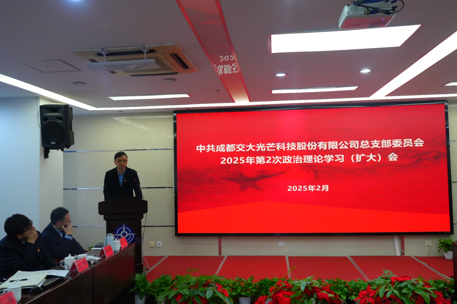 2月21日,交大光芒黨總支召開2025年第2次政治理論學(xué)習(xí)(擴(kuò)大)會(huì)議。會(huì)議由黨總支書記、常務(wù)副總經(jīng)理王濤主持,黨總支委員、經(jīng)營班子成員出席會(huì)議,中層及以上管理人員參加會(huì)議。