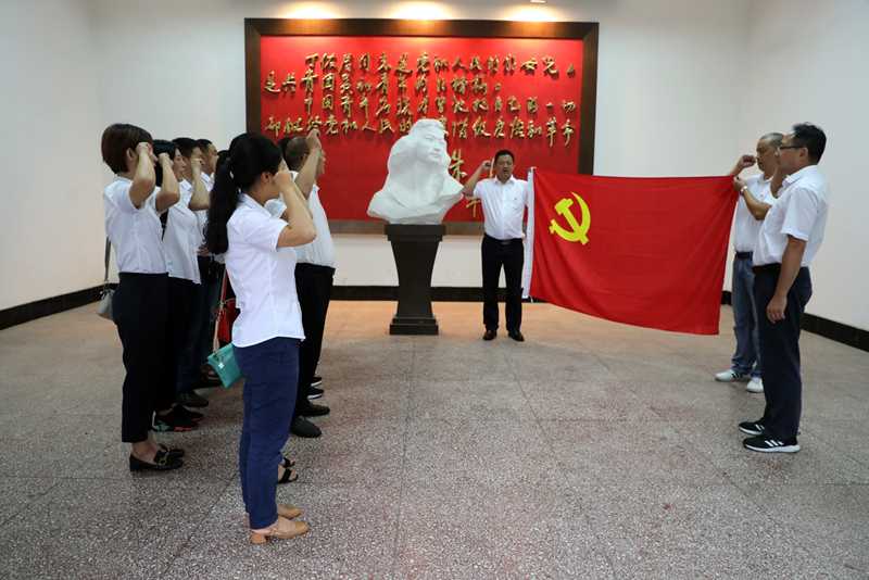 細(xì)雨紛紛,松柏肅穆。近日,嘉陽(yáng)集團(tuán)機(jī)關(guān)第三黨支部和營(yíng)銷公司黨支部的14名黨員一早就來(lái)到丁佑君烈士紀(jì)念館,在嘉陽(yáng)集團(tuán)黨委副書記范勤英同志的帶領(lǐng)下向佑君烈士的漢白玉雕像敬獻(xiàn)花籃、默哀致意。步入紀(jì)念館內(nèi),全體黨員們面對(duì)先烈遺像和鮮紅的黨旗,莊嚴(yán)地舉起右手,重溫入黨誓詞,牢記初心和使命,錚錚誓言久久回蕩在大家的心間。隨后,黨員們懷著無(wú)比崇敬的心情瞻仰了烈士紀(jì)念館,詳細(xì)了解佑君烈士的生平和英雄事跡,追憶在那個(gè)戰(zhàn)火紛飛的年代,無(wú)數(shù)先烈拋頭顱、灑熱血,赴湯蹈火,舍身取義,矢志不渝地用他們的青春和熱血,譜寫了可歌可泣的壯麗詩(shī)篇,用他們的生命和熱血換來(lái)了我們今天的歲月靜好。黨員同志們暗下決心,一定要傳承紅色基因,弘揚(yáng)先烈精神,不忘初心,砥礪前行!目前,“不忘初心牢記使命”主題教育正在公司全面展開(kāi),每名共產(chǎn)黨員都有義務(wù)用黨的創(chuàng)新理論武裝頭腦,立足崗位為企業(yè)的安全發(fā)展再立新功,用自己的實(shí)際行動(dòng)為黨的98周歲生日獻(xiàn)禮!