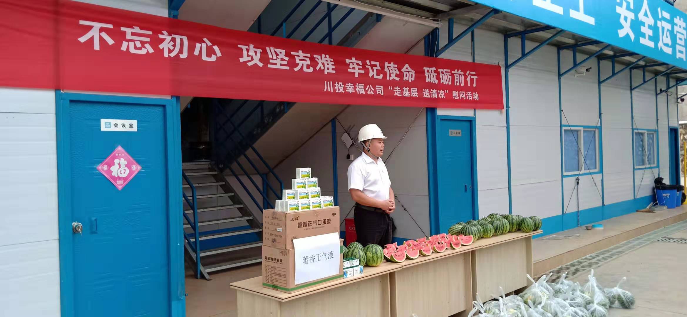 為踐行集團(tuán)公司“雙轉(zhuǎn)雙促”活動(dòng)要求,推動(dòng)實(shí)施“雙爭雙百”計(jì)劃,回應(yīng)項(xiàng)目施工一線民工訴求,營造安全、和諧的共建共享氛圍,7月23日,房地產(chǎn)公司黨支部副書記、總經(jīng)理張碧波在米易“時(shí)光水街”項(xiàng)目建設(shè)現(xiàn)場參加川投幸福公司“不忘初心攻堅(jiān)克難 牢記使命 砥礪前行”走基層送清涼慰問活動(dòng)。本次慰問以參建各方一線民工、施工管理人員為主,活動(dòng)發(fā)放了西瓜、藿香正氣液、十滴水等防暑降溫用品,獲得參建各方一致好評(píng)。