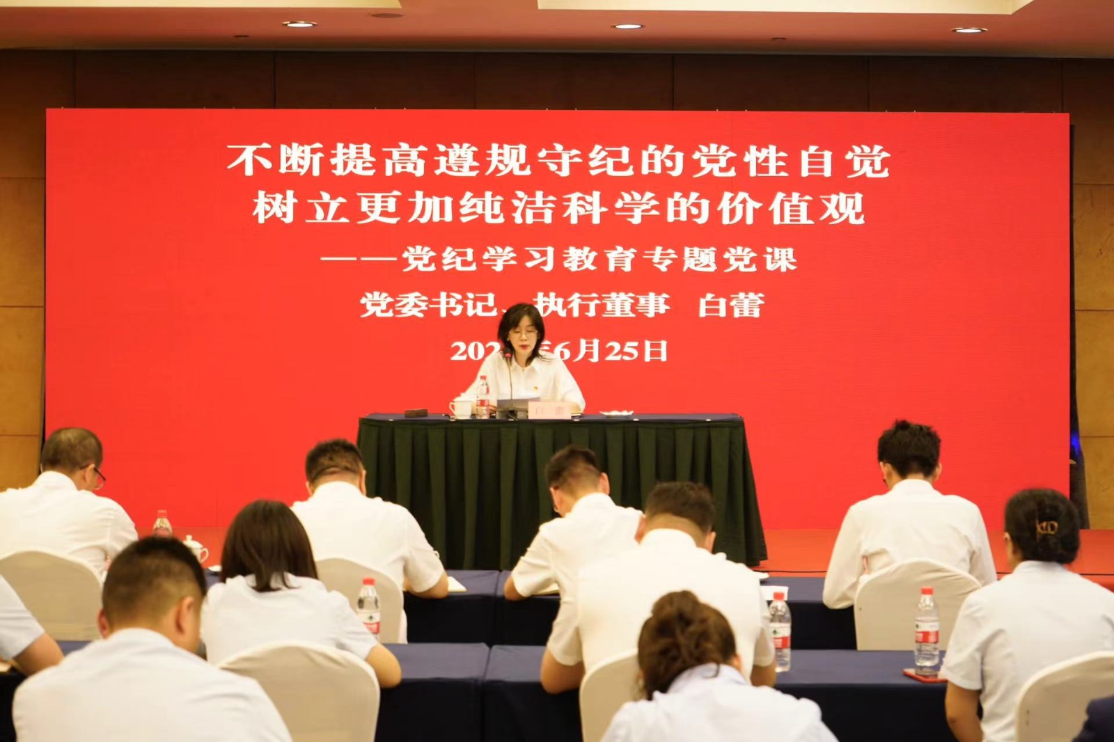 為深入學(xué)習(xí)貫徹習(xí)近平總書(shū)記關(guān)于加強(qiáng)黨的紀(jì)律建設(shè)的重要論述以及習(xí)近平總書(shū)記關(guān)于黨紀(jì)學(xué)習(xí)教育重要講話和重要指示精神,全面貫徹落實(shí)中央和上級(jí)黨委對(duì)學(xué)習(xí)貫徹新修訂《中國(guó)共產(chǎn)黨紀(jì)律處分條例》的部署要求,6月25日上午,川投國(guó)網(wǎng)黨委書(shū)記、執(zhí)行董事白蕾以《不斷提高遵規(guī)守紀(jì)的黨性自覺(jué) 樹(shù)立更加純潔科學(xué)的價(jià)值觀》為題,為公司黨員干部講授黨紀(jì)學(xué)習(xí)教育專題黨課。