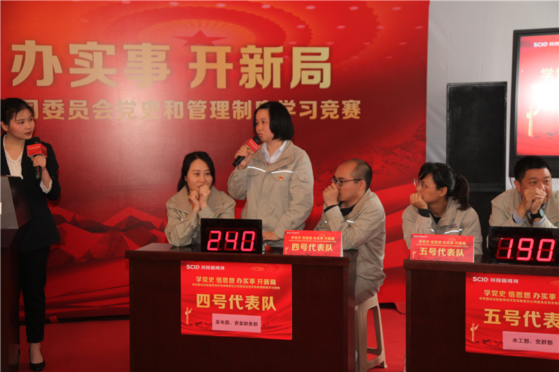 比賽開始前,田灣河公司黨委書記、董事長李紅代表公司黨委致辭。李紅強調(diào),要通過本次比賽實現(xiàn)“三個結合”,推進“四融合”即:將學黨史與公司打造“貢嘎明珠,水電精品”的目標相結合;將學黨史與公司“十四五”期間“一強一精兩協(xié)同”規(guī)劃相結合;將學黨史與公司建立健全制度體系,提升企業(yè)現(xiàn)代化管理能力相結合;形成“黨建+生產(chǎn)經(jīng)營”融合的“發(fā)展力”,“黨建+科技創(chuàng)新”融合的“創(chuàng)新力”,“黨建+隊伍建設”融合的“人才力”,“黨建+企業(yè)文化”融合的“文化力”,從而多力匯集打造“小而精、小而優(yōu)、小而強、小而美”的“水電+旅游”明星示范型企業(yè)。全面實現(xiàn)公司“3065”的年度工作目標,并以優(yōu)異的業(yè)績慶祝我黨100年華誕的到來!