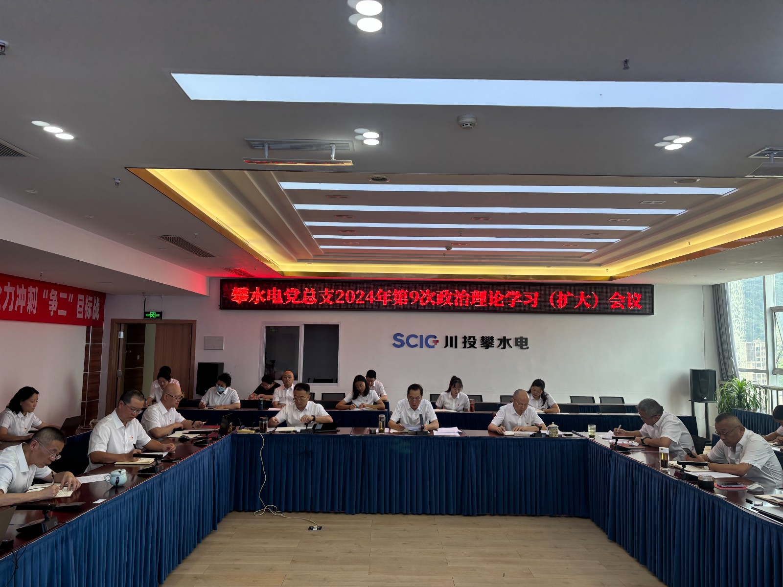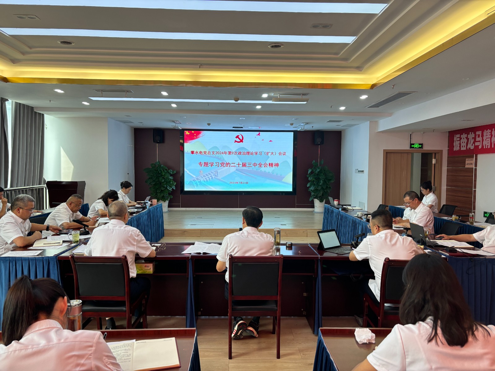 7月24日,攀水電公司黨總支召開2024年第9次政治理論學(xué)習(xí)(擴(kuò)大)會議,專題傳達(dá)學(xué)習(xí)黨的二十屆三中全會精神。會議由川投能源副總經(jīng)理、攀水電公司黨總支書記、董事長徐孝剛主持。公司黨總支政治理論學(xué)習(xí)會成員、全體中干、支部書記、其他黨員、統(tǒng)戰(zhàn)對象、入黨積極分子共計(jì)30余人參加學(xué)習(xí)。