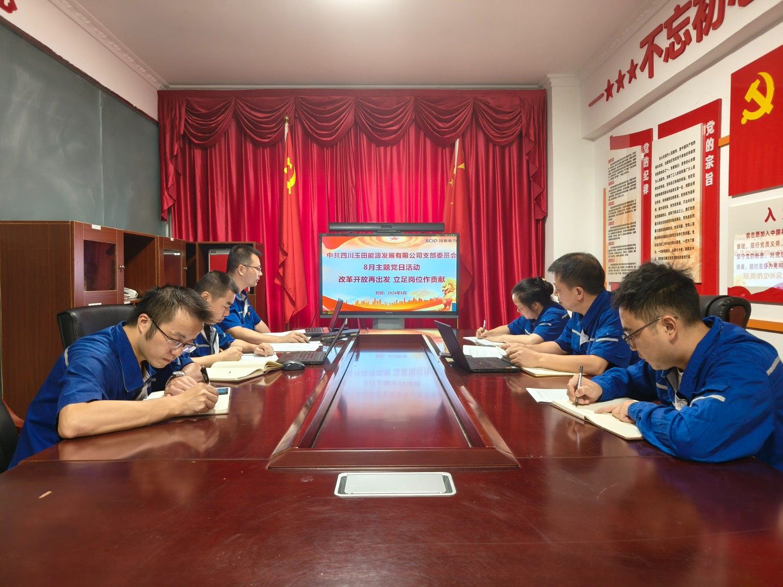 根據(jù)川投電力黨委部署安排,8月27日,川投能源下屬玉田黨支部組織開(kāi)展“改革開(kāi)放再出發(fā)、立足崗位作貢獻(xiàn)”主題黨日活動(dòng),深入學(xué)習(xí)貫徹黨的二十屆三中全會(huì)精神,結(jié)合工作實(shí)際開(kāi)展專(zhuān)題學(xué)習(xí)研討。會(huì)議由黨支部書(shū)記、廠長(zhǎng)葉勁馳主持,支部全體黨員、發(fā)展對(duì)象、入黨積極分子參加。