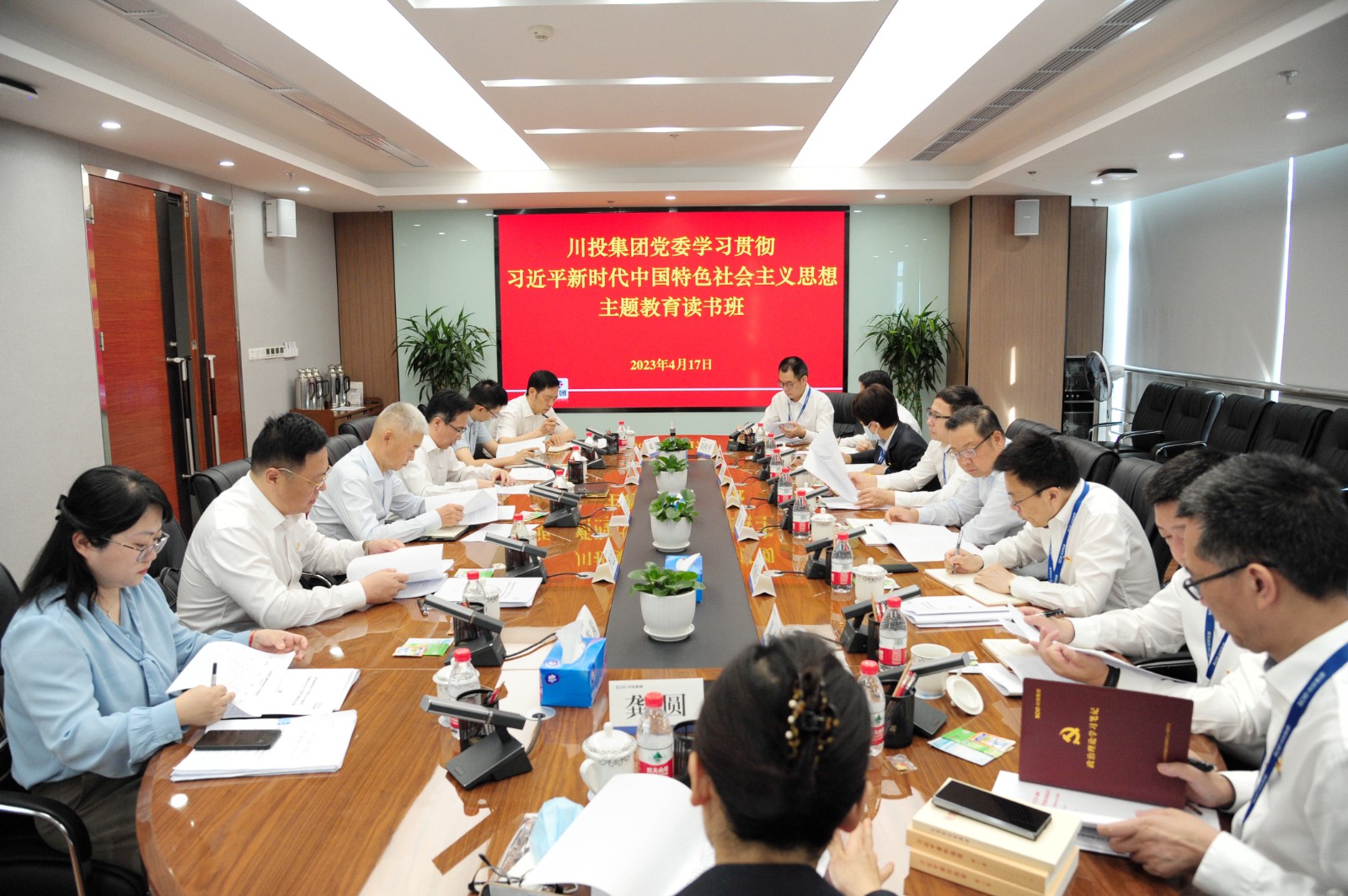 根據(jù)省委主題教育領(lǐng)導(dǎo)小組辦公室和省國(guó)資委黨委主題教育領(lǐng)導(dǎo)小組統(tǒng)一部署,川投集團(tuán)黨委學(xué)習(xí)貫徹習(xí)近平新時(shí)代中國(guó)特色社會(huì)主義思想主題教育讀書班于4月17日開班,圍繞學(xué)深悟透習(xí)近平新時(shí)代中國(guó)特色社會(huì)主義思想,堅(jiān)持先學(xué)一步、深學(xué)一層,全面鋪開理論學(xué)習(xí),示范帶動(dòng)集團(tuán)公司及所屬企業(yè)領(lǐng)導(dǎo)班子成員和廣大黨員干部自覺加強(qiáng)黨的創(chuàng)新理論武裝。省委第十八巡回指導(dǎo)組組長(zhǎng)代平、組員蔣鵬、陳茜列席集團(tuán)黨委讀書班,對(duì)集團(tuán)理論學(xué)習(xí)進(jìn)行督促指導(dǎo)。集團(tuán)公司黨委書記、董事長(zhǎng)、主題教育領(lǐng)導(dǎo)小組組長(zhǎng)吳曉曦主持開班式并講話。
