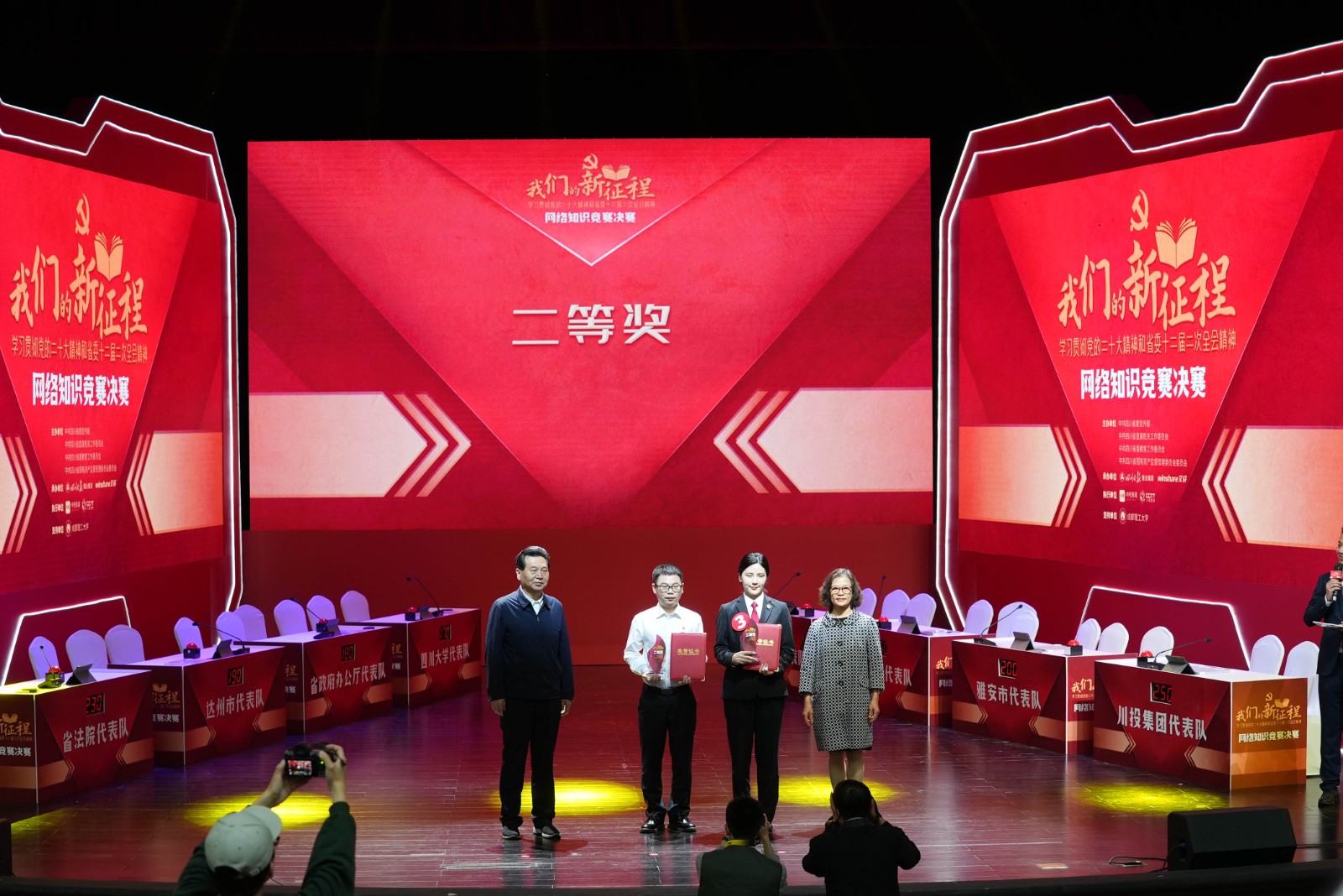 5月10日下午,由省委宣傳部、省國資委黨委等四部門主辦的“我們的新征程”——學習貫徹黨的二十大精神和省委十二屆二次全會精神網(wǎng)絡知識競賽總決賽在成都舉行。川投集團代表隊攜手省屬兄弟企業(yè)川煤集團代表隊,與來自省直機關、市州、國企、高校等系統(tǒng)的8支隊伍、24名選手闖入決賽、同場競技。經過近2個小時的激烈角逐,川投集團代表隊最終以總分第二名的優(yōu)異成績,榮獲大賽二等獎;川投集團榮獲優(yōu)秀組織獎。