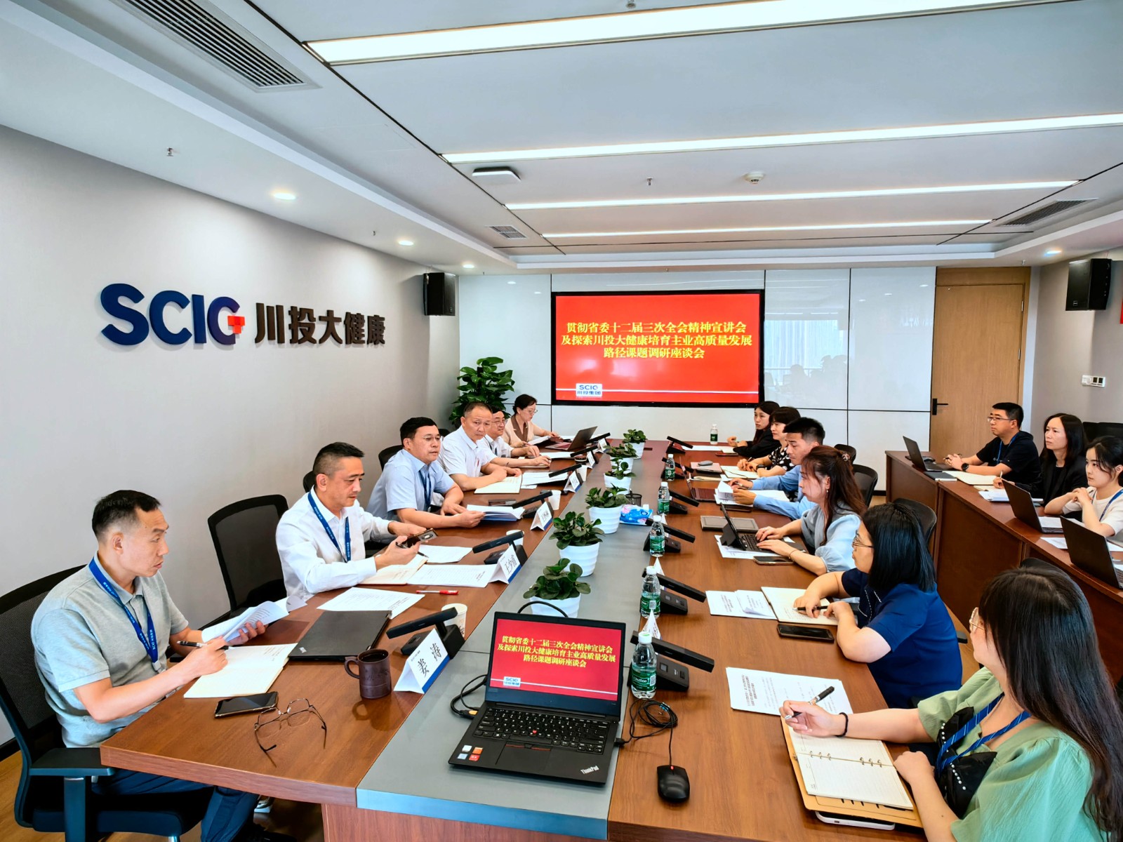 王懷林指出,省委十二屆三次全會是在深入學(xué)習(xí)貫徹黨的二十大精神、大力實施“四化同步、城鄉(xiāng)融合、五區(qū)共興”發(fā)展戰(zhàn)略、奮力推進新時代新征程四川現(xiàn)代化建設(shè)開好局起好步的關(guān)鍵時期,召開的一次十分重要的會議,對確保新時代新征程四川現(xiàn)代化建設(shè)開好局起好步,具有十分重大的意義。大健康產(chǎn)業(yè)集團全員要深入學(xué)習(xí)全會主題,將建設(shè)現(xiàn)代化產(chǎn)業(yè)體系作為一項重大而緊迫的戰(zhàn)略任務(wù)來謀劃推進和貫徹落實;主動作為,在健康產(chǎn)業(yè)這一新領(lǐng)域新賽道上搶灘布局。要深入學(xué)習(xí)領(lǐng)會全會精神,精心組織開展學(xué)習(xí)貫徹習(xí)近平新時代中國特色社會主義思想主題教育,主動探索破解企業(yè)發(fā)展的路徑及方法。要推動省委全會決策部署在川投大健康落地見效,全面把握省委關(guān)于加快建設(shè)現(xiàn)代化產(chǎn)業(yè)體系的一系列戰(zhàn)略舉措,找準國資國企著力重點,為塑造四川高質(zhì)量發(fā)展新優(yōu)勢作出新貢獻。