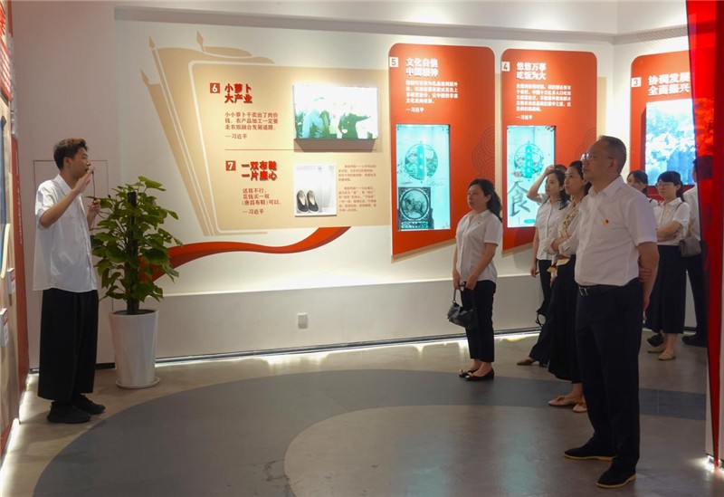 沿著總書記的足跡,黨員同志們先后參觀了戰(zhàn)旗初心館、戰(zhàn)旗特色產(chǎn)品展示中心、鄉(xiāng)村十八坊等核心區(qū)域等特色區(qū)域,了解了戰(zhàn)旗村發(fā)展歷程與鄉(xiāng)村振興建設(shè)成果,深切感受到戰(zhàn)旗村人民在總書記的殷切囑托下發(fā)奮努力、闊步前行的力量。