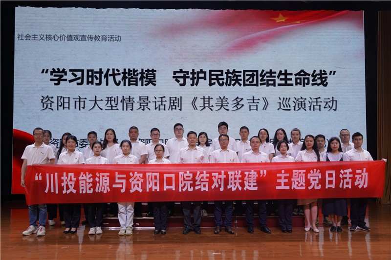 為進(jìn)一步深化學(xué)習(xí)貫徹習(xí)近平新時(shí)代中國特色社會(huì)主義思想主題教育,豐富川投能源與口腔學(xué)院結(jié)對聯(lián)建的活動(dòng)形式,不斷激發(fā)廣大黨員干部愛黨愛國情懷,6月16日下午,川投能源與資陽口腔職業(yè)學(xué)院開展結(jié)對聯(lián)建主題黨日活動(dòng)——觀看話劇《其美多吉》。