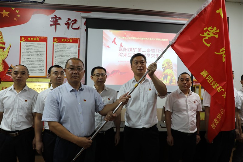 在主題教育學習中,公司批準了采二隊結合自身實際成立了智能化綜采黨員突擊隊,將對第二條智能化綜采生產(chǎn)工作面噴霧降塵系統(tǒng)、采煤機記憶切割和支架自動跟機拉架、智能化綜采工藝升級、智能化綜采生產(chǎn)工作面沿空留巷、成本管控等進行全方位攻關。范勤英向采二隊成立智能化綜采黨員突擊隊表示祝賀,希望他們勤奮工作創(chuàng)造佳績,并為采二隊授旗。