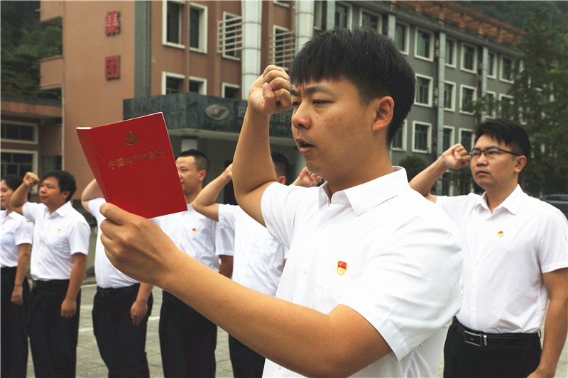 “大家一定要牢記入黨的初心……”6月30日,嘉陽集團(tuán)公司黨委舉行新黨員入黨宣誓儀式,來自機(jī)關(guān)和基層各單位的8名新黨員仰望神圣的黨旗,莊嚴(yán)宣誓。