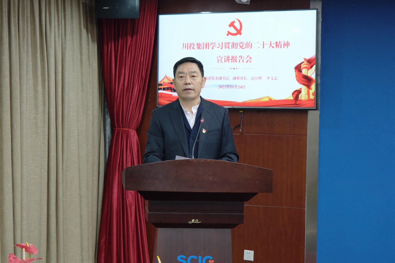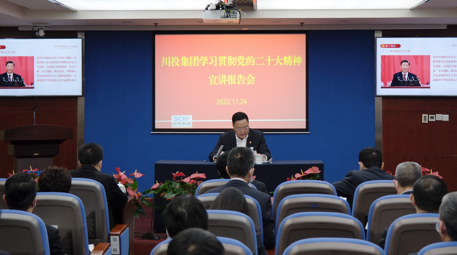 為進一步引導集團黨員干部職工深學細悟黨的二十大精神,堅定推動黨的二十大決策部署落地生根,11月24日,川投集團學習貫徹黨的二十大精神宣講報告會在成都舉行。集團公司黨委副書記、副董事長、總經(jīng)理李文志作宣講報告,集團公司黨委副書記、董事鄧凱主持報告會。