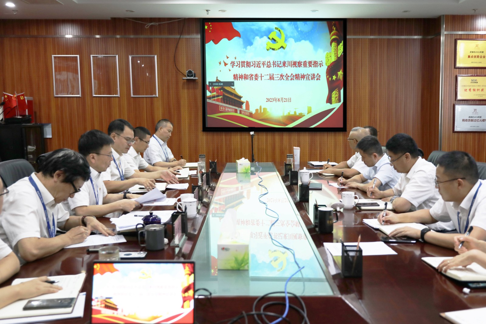 8月21日,集團公司副總經(jīng)理、房地產(chǎn)公司董事長孫前元在房地產(chǎn)公司學習貫徹習近平總書記來川視察重要指示精神和省委十二屆三次全會精神宣講。房地產(chǎn)公司黨總支書記、總經(jīng)理王海洋主持會議。